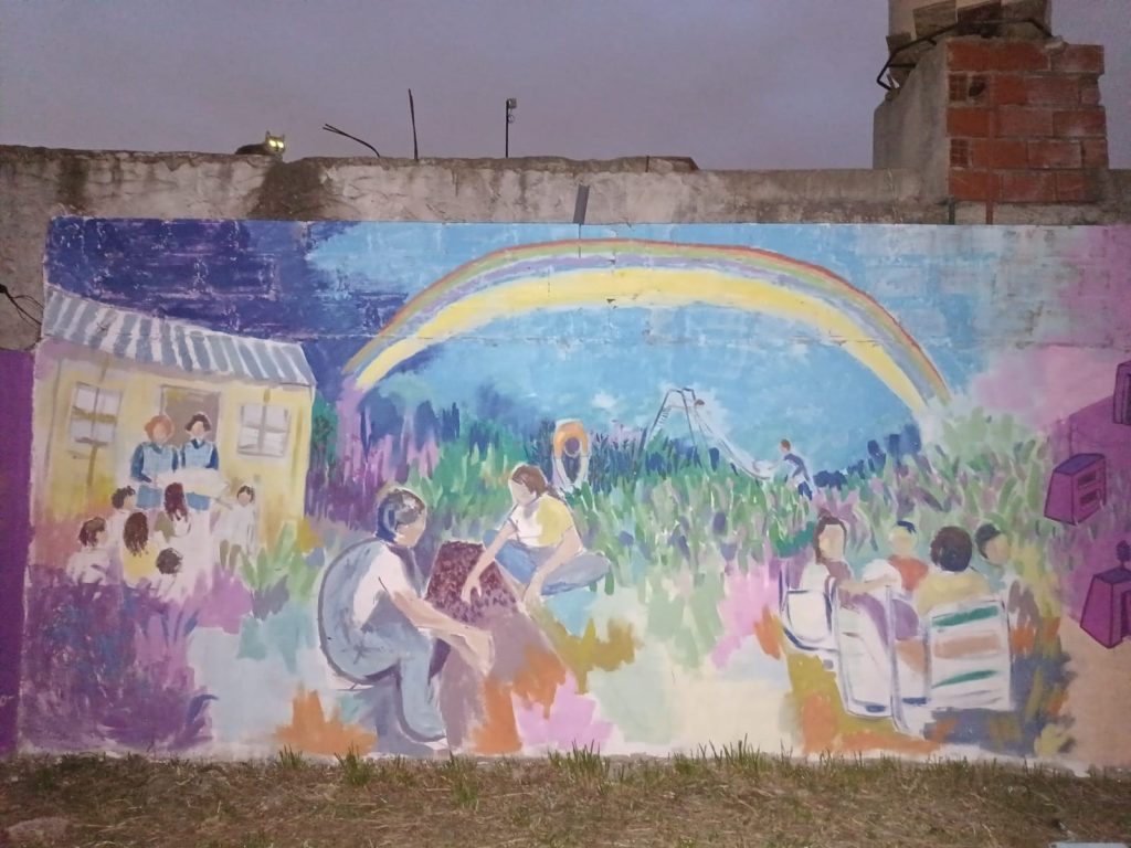 El pasado sábado 21 de octubre se llevó adelante la jornada de murales convocada desde el proyecto «Sendero de la Memoria» en el polideportivo Todos Juntos de barrio Sol y Verde. Durante este año se realizaron varias actividades previas para debatir acerca de la historia del lugar, escuchar las voces de vecinos y vecinas e ir dándole forma a la propuesta.